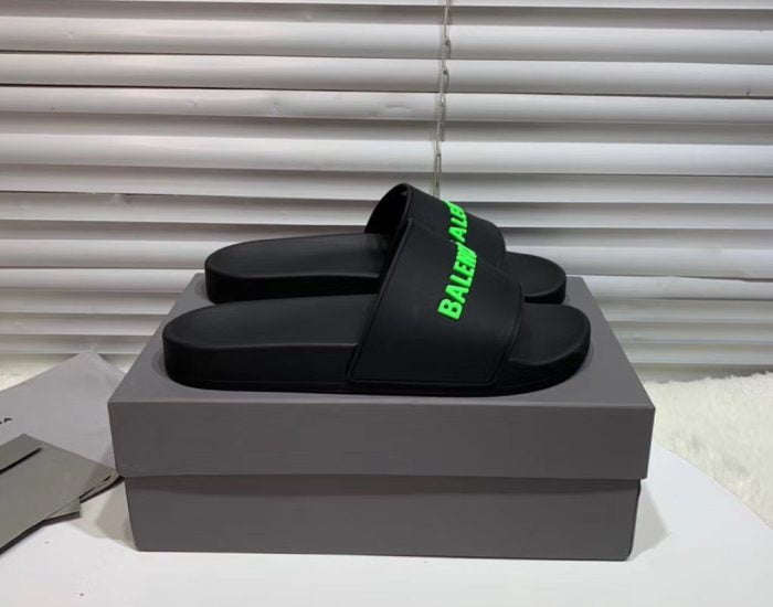 Dép Balenciaga nam màu đen chữ xanh DBL02