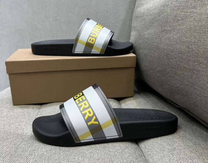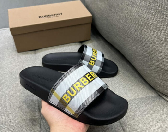Dép nam Burberry họa tiết logo chữ vàng Like Auth